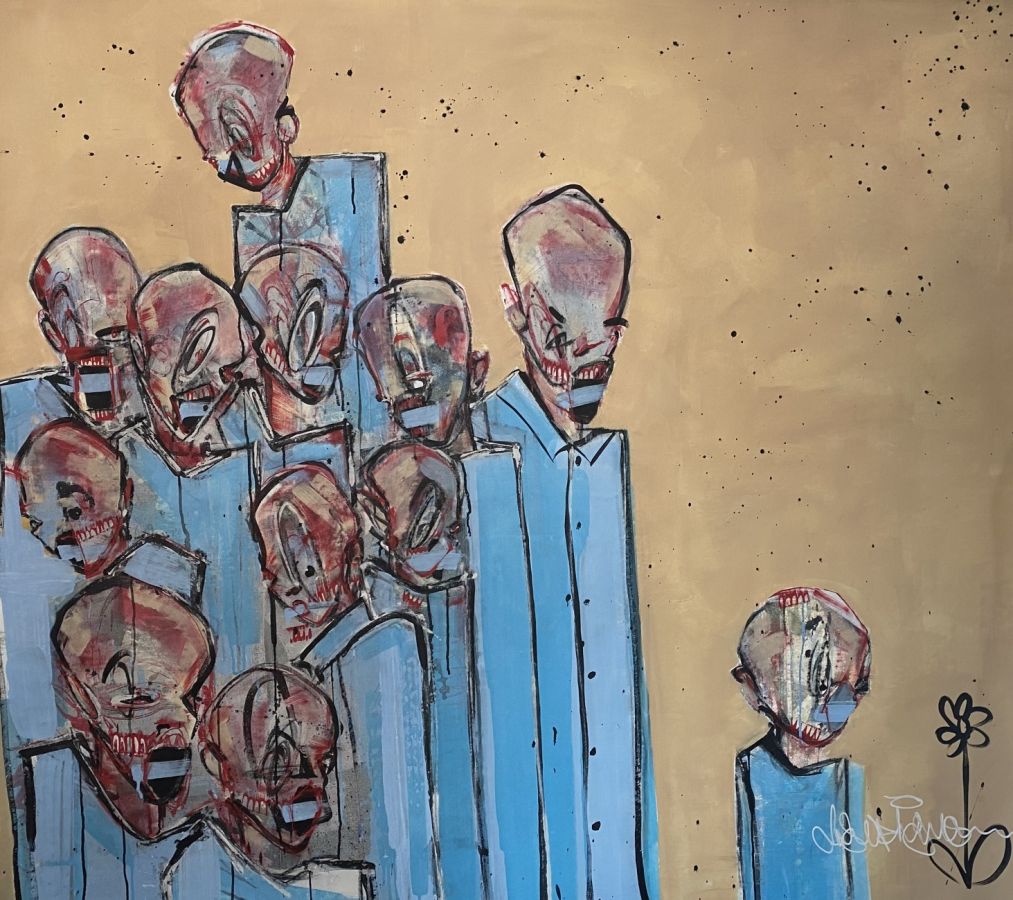 Joe is a self-taught artist. Working from his home studio in Manchester, he explores themes of identity, emotion, society, and the human experience. Drawing from his own personal history and mental health, as well as the shared experiences of the voiceless and invisible living on the streets, Joe continues to discover a haunting beauty in the darkest aspects of the human psyche.