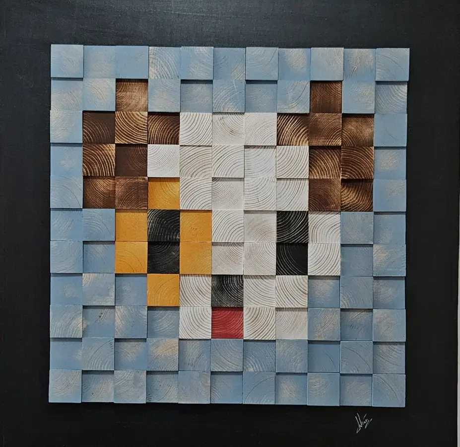 Drawing on a long-standing interest in woodworking, Tatian creates unique abstract modern pixel-style paintings made from meticulously cut and shaped wood blocks. Each piece involves hours of cutting, sanding, painting, and varnishing each individual block before gluing them together to form stunning and distinctive artworks.