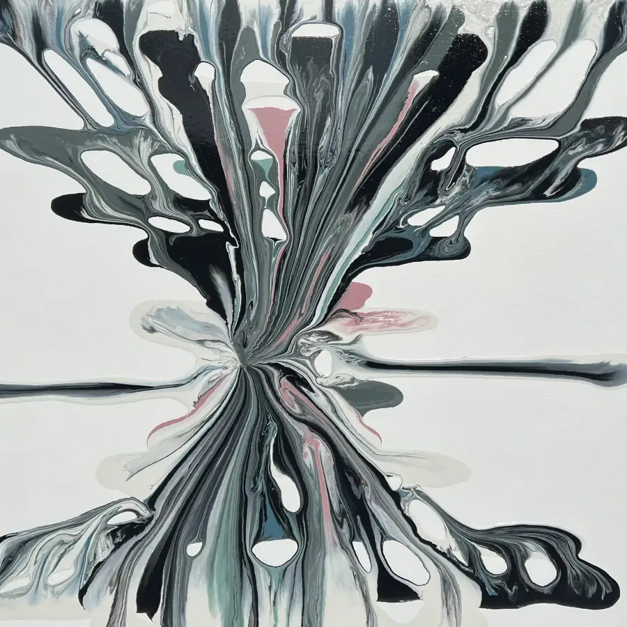 Kirsty works with industrial car paints. Mixing and manipulating her paints she manages to create interesting art.