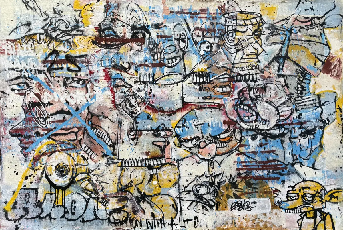 With a mixture of street, abstract and fine art influences, most of Joe's work is created using a blend of acrylics, spray paint and charcoal. However, he doesn’t limit himself, sometimes it’s a case of using whatever’s at hand; a splash of tea, a mouthful of spit, on occasion he doesn’t even use a canvas.
