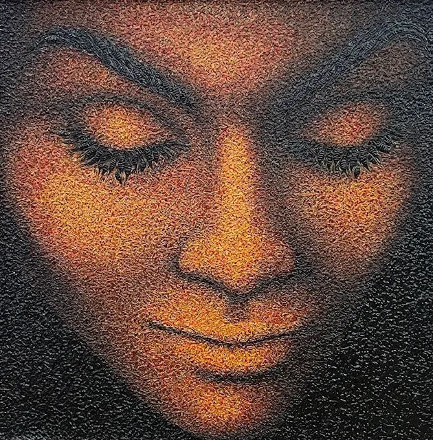 Kieran Crowders technique is extraordinary. Mixing oil and resin with heat he works his paint into a thread like consistency. Building upon layers he creates masterful contemporary figurative art work.