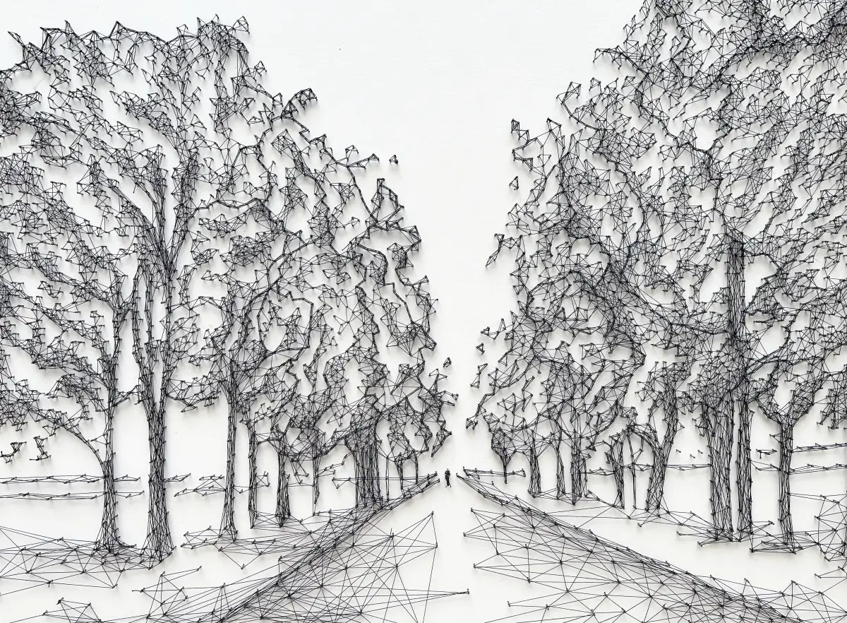 My practice challenges the boundaries between craft and fine art, by putting a contemporary spin on thread as a material that we can view in both fine art and craft spaces